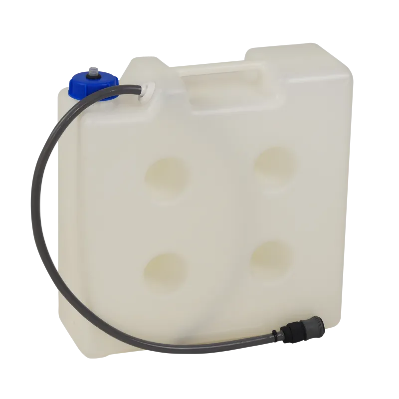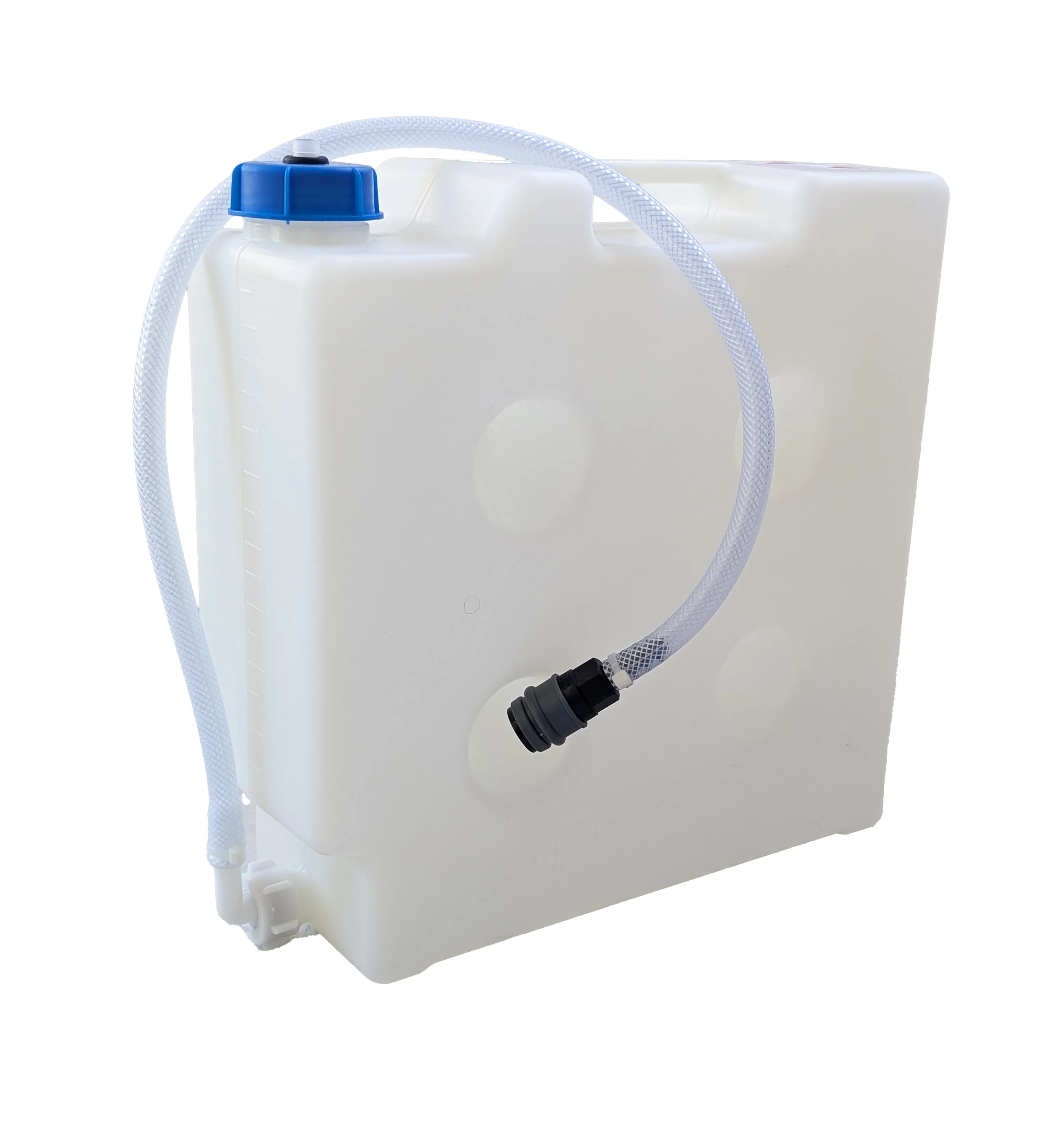 Bidon 10L équipé avec tuyau, bouchon et coupleur, compatible Climwasher Pro+.