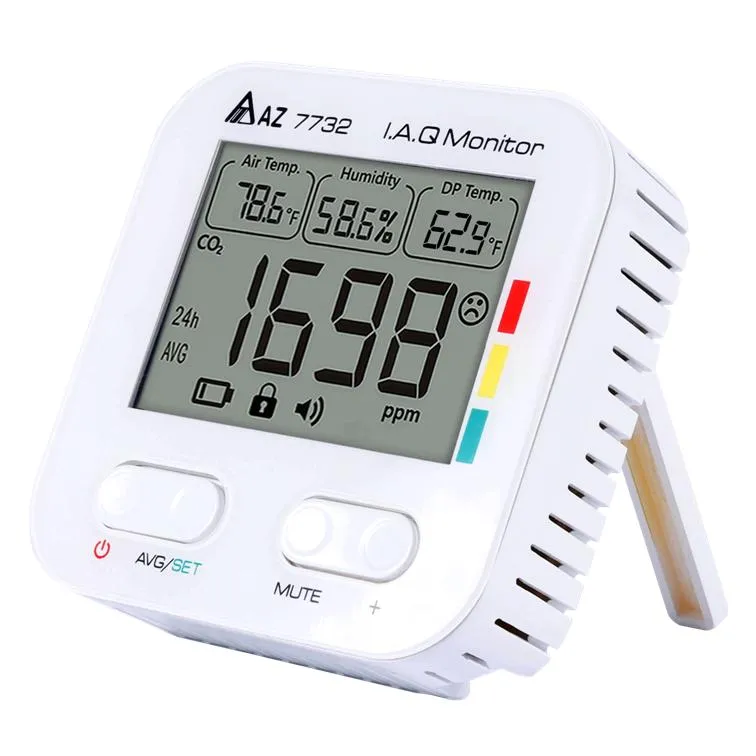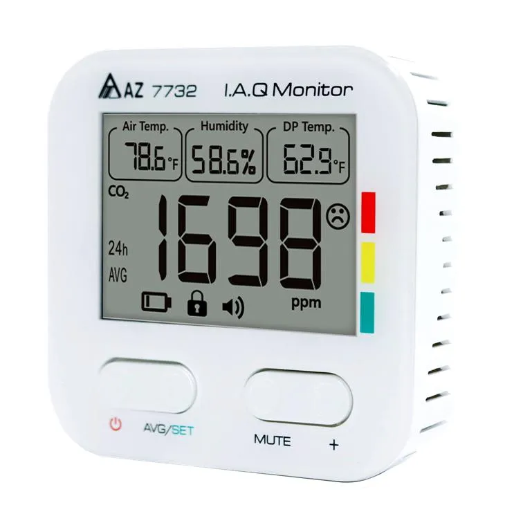 La station AZ-7732 est un appareil complet de surveillance de la qualité de l’air intérieur. Elle permet de suivre avec précision et en temps réel les niveaux de CO₂, ainsi que la température ambiante, l’humidité relative et le point de rosée. Son capteur NDIR assure une mesure stable et précise du dioxyde de carbone, avec un temps de préchauffage de seulement 10 secondes.