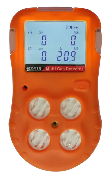 Le détecteur portable BX-616 est conçu pour la surveillance simultanée de quatre gaz : oxygène (O₂), monoxyde de carbone (CO), sulfure d’hydrogène (H₂S) et gaz combustibles (CH₄). Grâce à ses capteurs de haute précision, il mesure en continu la concentration de ces gaz et déclenche des alarmes en cas de dépassement des seuils de sécurité.