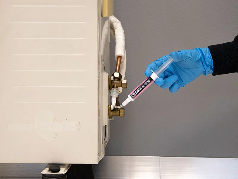 EXTREME-ULTRA est une solution de réparation ultra efficace conçue pour colmater rapidement les micro-fuites dans les circuits de climatisation et pompes à chaleur. Son application est simple grâce à son conditionnement en seringue préremplie, équipée de raccords 1/4’’ et 5/16’’ SAE. Développée après quatre années de recherche et des milliers de tests, sa formule sans polymère garantit une action permanente sans risque de réaction avec l’humidité ou l’oxygène du système.
