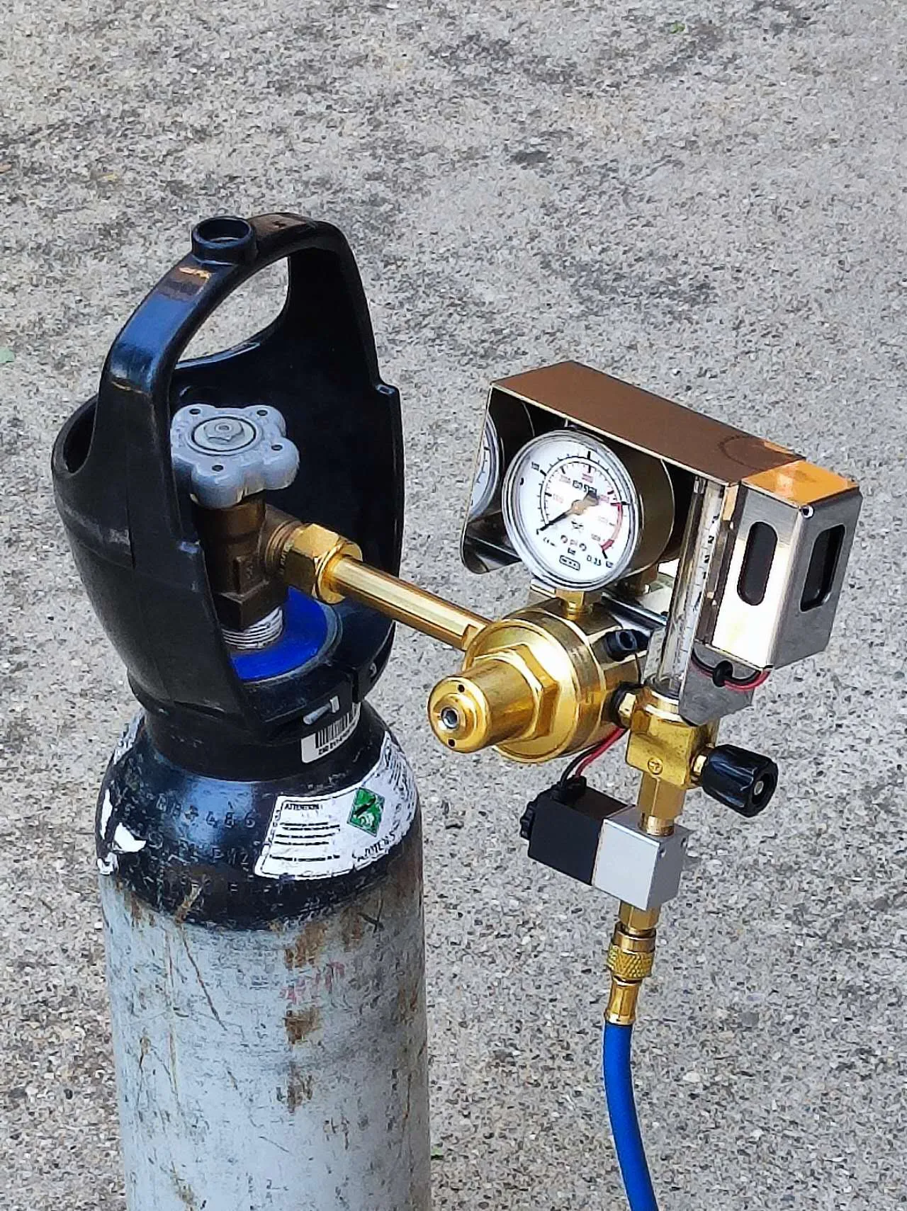 Détendeur-débilitre pour l’azote, télécommandé à distance (>200 m), spécialement conçu pour les opérations de brasure sur les installations de froid et de génie climatique.