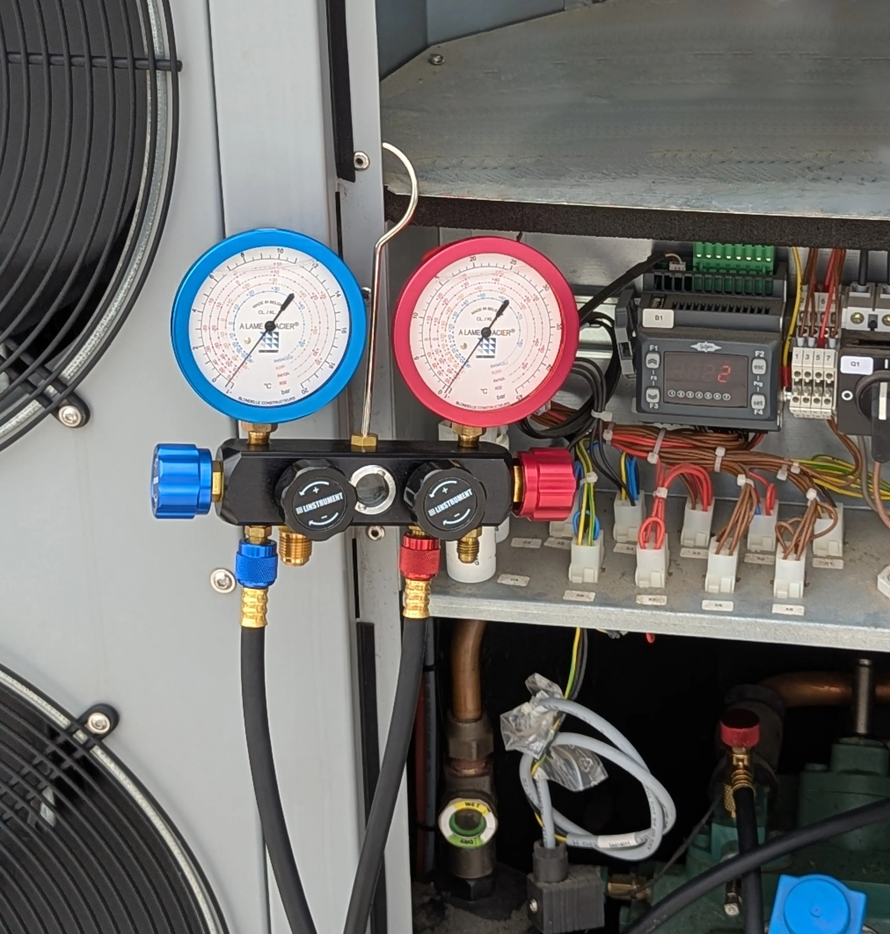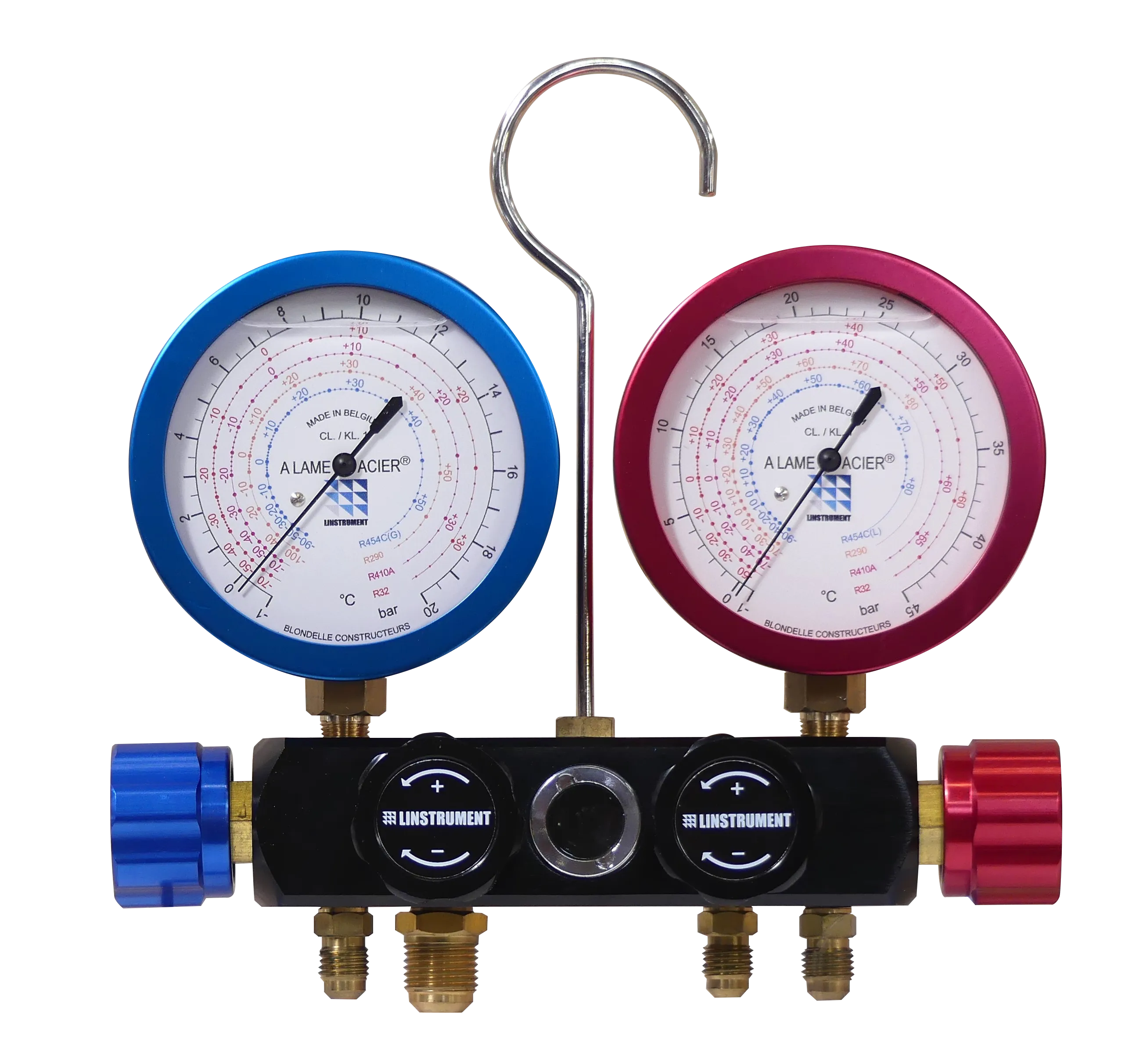 Manifold 4 voies à bain d’huile dédié aux fluides courants utilisés dans les PAC comme le R32, R410A, R290 et R454C. Fourni avec flexibles renforcés et mallette de transport.