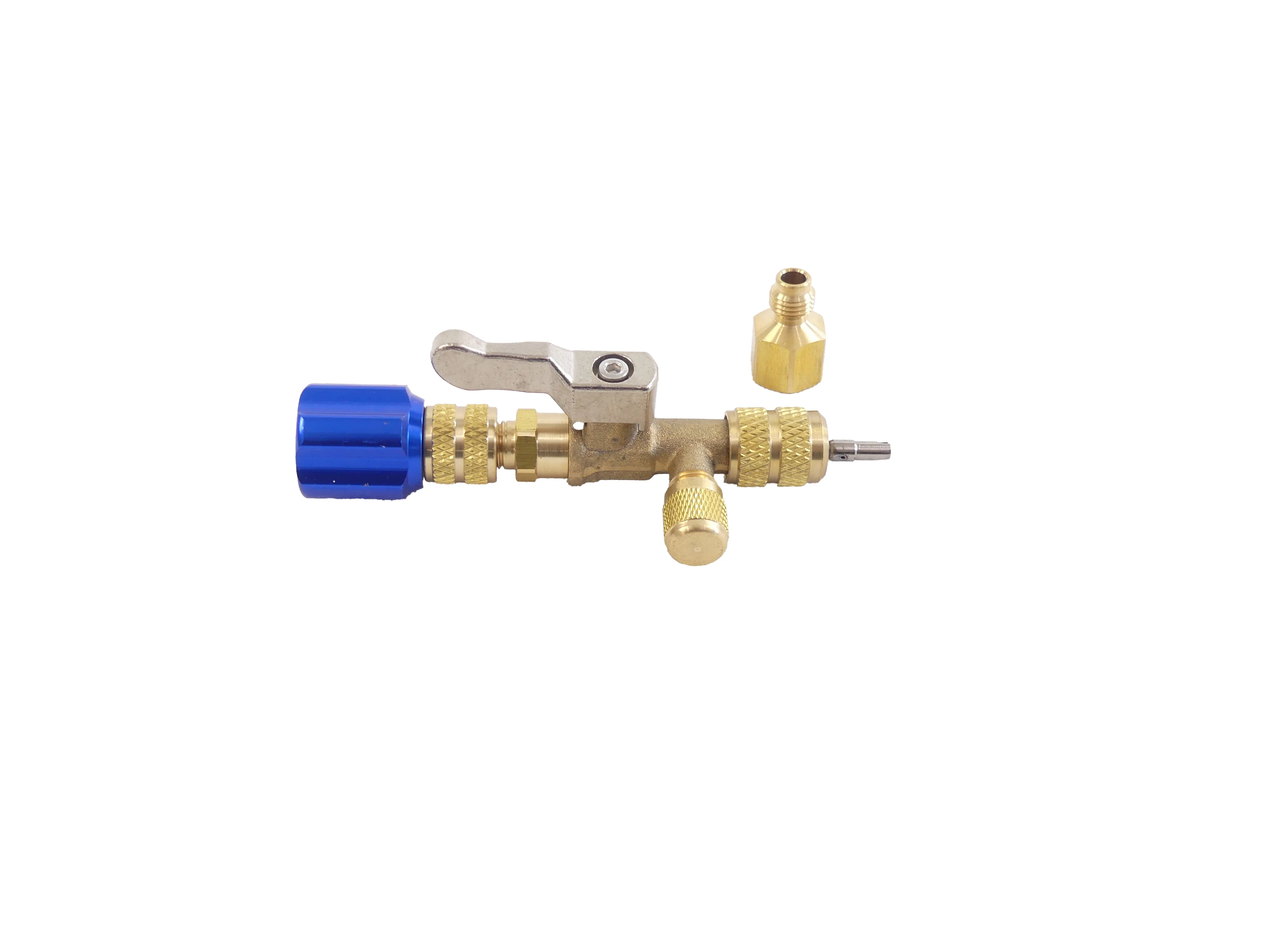 Outil multifonction pour retirer les valves Schrader sous pression et optimiser le tirage au vide, la charge et la récupération.