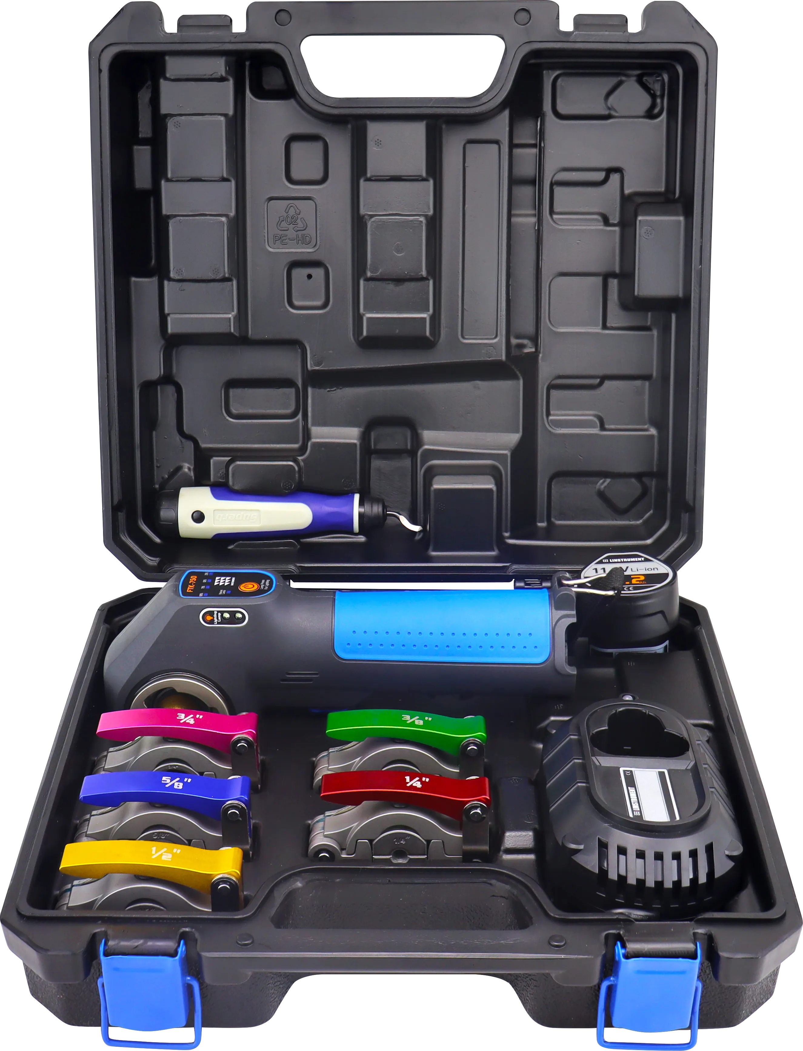 Dudgeonnière sans fil légère et ergonomique pour la réalisation rapide de collets sur tubes cuivre de 1/4’’ à 3/4’’. Idéale pour un travail à hauteur ou à bout de bras.